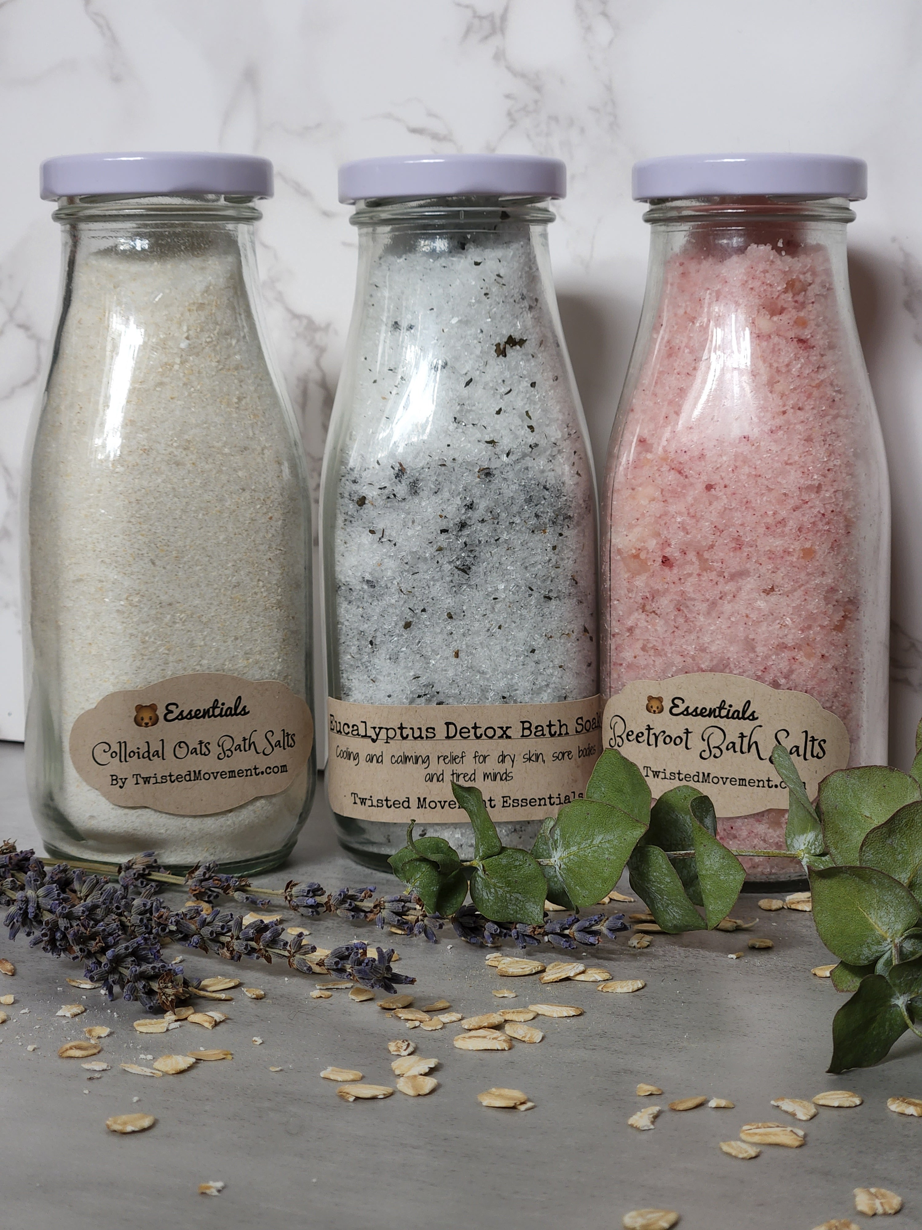 Oats Bath Salts are filled with espom salt, colloidal oats and baking soda for the ultimate cleansing and soothing bath experience. Great for dry, itchy, and irritated skin. Baking soda is great for cleansing, creating a sweat for detoxification benefits and to help you prepare for a good night's deep sleep.