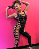 Super limited edition catsuit with hand placed rhinestones. The ultimate sparkle costume for the look of a lifetime. A mix of iridescent and black rhinestones in varying sizes for a beautiful contrast and shine. Each item is hand made and therefore have slight variations.