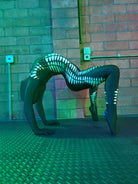 Full bodysuit covers feet and gloved hands. Spacious fit and suitable for long torso’s and taller figures. Zip front opening with a hood that can cover the whole face for those sexy creepster vibes. Spandex polyester blend with a shiny finish. One size fits most. Plus size available upon request.